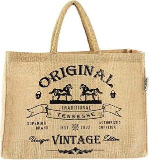 Einkaufskörbe. Bedruckte Einkaufstasche. Jute Tasche groß. Korbtasche, wasserabweisenden Strandtasche. Jutetaschen Shopper als Shopping bag. Nachhaltige Tragetasche (Vintage Pferde)