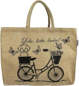 Einkaufskörbe. Bedruckte Einkaufstasche. Jute Tasche groß. Korbtasche, wasserabweisenden Strandtasche. Jutetaschen Shopper als Shopping bag. Tragetasche (Fahrrad mit Hund)