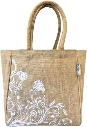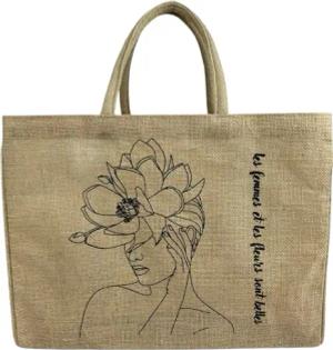 Jute Handtasche kleine Tote Bag vegane Einkaufskorb Naturfarbe Geschenktasche mini Tragetasche Jutetasche Korb mit Aufdruck Damen Tasche nachhaltige Shopper Jutebeutel als Geschenk für Frauen