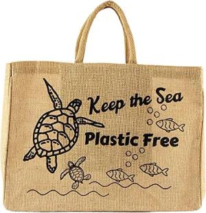 Einkaufskörbe. Bedruckte Einkaufstasche. Jute Tasche groß. Korbtasche, wasserabweisenden Strandtasche. Jutetaschen Shopper als Shopping bag. Tragetasche (keep the sea free)
