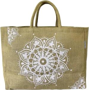 Einkaufskörbe. Bedruckte Einkaufstasche. Jute Tasche groß. Korbtasche, wasserabweisenden Strandtasche. Jutetaschen Shopper als Shopping bag. Nachhaltige Tragetasche (Beige)