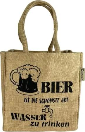 Jute Flaschentasche. Geschenke für Männer. Bierträger/Flaschenträger mit Trennwänden für 6 Flaschen. kleine Einkaufskorb. Lustige witzige Bier Männerhandtasche (Natur/Bier-Wasser)