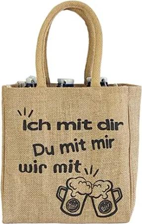 Jute Flaschentasche. Geschenke für Männer. Bierträger/Flaschenträger mit Trennwänden für 6 Flaschen. kleine Einkaufskorb. Lustige witzige Bier Männerhandtasche (Natur/Ich mit dir)