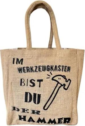 Jute Flaschentasche. Geschenke für Männer. Bierträger/Flaschenträger mit Trennwänden für 6 Flaschen. kleine Einkaufskorb. Lustige witzige Bier Männerhandtasche (Natur/Werkzeugkasten)