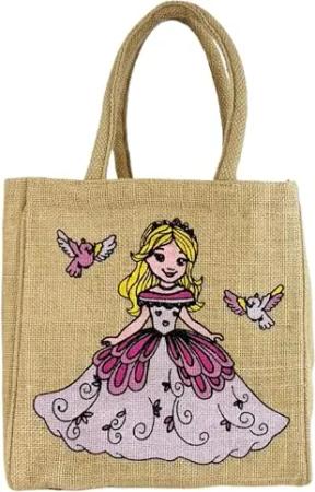 Kinder Handtasche vegane Jute Schultertasche kleine Mädchenhandtasche Jutetasche bedrückte Korb Mädchen Tragetasche Süße Kleinkinder Kindertasche Jutebeutel als Coole Geschenk (Prinzessi)