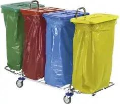 Hotelwagen HW 4 SOLID, verchromt HW 4 , mit 2 Halterahmen für 120 l - Säcke