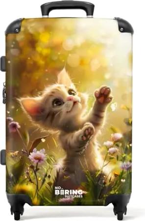 NoBoringSuitcases.com Kinderkoffer Mädchen, Koffer Groß, Koffer Kinder, TSA, Koffer Mädchen, Reisekoffer, 20kg Koffer, Reisekoffer Groß, Koffer 4 Rollen, Koffer M (Kätzchen - Gold, 67 cm - 72 L)