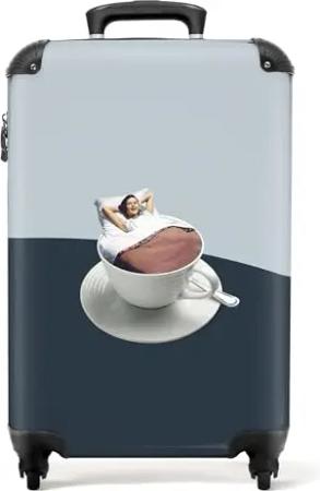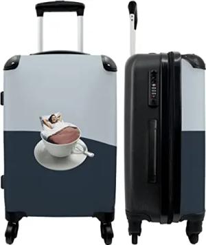 NoBoringSuitcases.com® Koffer Handgepäck Trolley Rollkoffer Kleine Reisekoffer mit 4 Rollen - Abstrakt - Frau - Design - Pastell - 55x35x20cm - Fotokoffer - Kabinenkoffer - Boardgepäck
