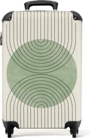 NoBoringSuitcases.com® Koffer Handgepäck Trolley Rollkoffer Kleine Reisekoffer mit 4 Rollen - Kreis - Linien - Abstrakt - Grün - 55x35x20cm - Fotokoffer - Kabinenkoffer - Boardgepäck