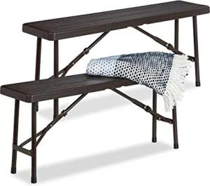 Bierbank 2er Set, faltbar, für Terrasse & Garten, Holzoptik, Kunststoff Campingbank HBT: 42x100x25 cm, braun