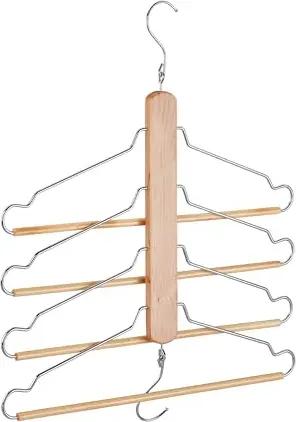 Mehrfach Kleiderbügel, 5er Set, platzsparend, 4 Bügel mit Hosensteg, Lotusholz & Metall, Multibügel, Natur/Silber