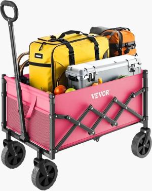 Bollerwagen faltbar, 106,2 kg, Handwagen mit Geländerädern, Transportwagen mit verstellbarem Griff, Campingwagen für Strand, Lebensmittelgeschäft, Garten, Pink & Schwarz, 660x450x460 mm