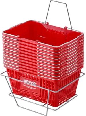 Einkaufskorb, 12er-Set, 21 l robuster Einkaufskorb aus Kunststoff mit Griff und Ständer, 16,5 x 11,8 x 8,27 Zoll, tragbarer Einkaufskorb in Großpackung für den Lebensmitteleinkauf