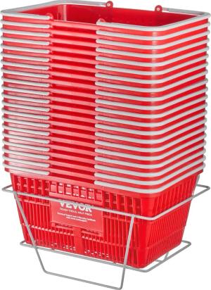 Einkaufskorb, 20er-Set, 21 l robuster Einkaufskorb aus Kunststoff mit Griff und Ständer, 16,5 x 11,8 x 8,27 Zoll, tragbarer Einkaufskorb in Großpackung für den Lebensmitteleinkauf