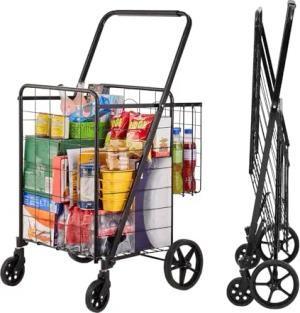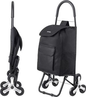 faltbarer Einkaufswagen, 450x350x965mm, Sackkarre zum Treppensteigen mit 6 Rädern, Aufbewahrungstasche aus Oxford-Stoff, zum Einkaufen, Büro, Umzug, Transport, Outdoor, Wäsche, Schwarz