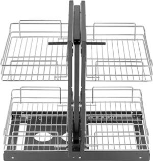 Küchenschrank-Organizer mit 2 Ebenen & 4 Ablagen, Aufbewahrungskorb aus verchromtem Karbonstahl, Aufbewahrungs-Organizer, links und rechts zu öffnen, min. Türöffnungsbreite 38 cm