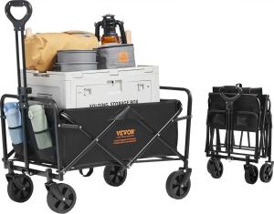 Bollerwagen 66x45x46 cm, 102 kg faltbarer Transportwagen mit Geländerädern, Outdoor-Allzweckwagen mit verstellbarem Griff, Campingwagen für Strand, Lebensmittelgeschäft, Garten, Schwarz