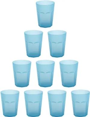 10 x Plastikbecher, Trinkbecher, Hell-Blau, Frostoptik, 250 ml, mit Eichstrich, bruchfest, stapelbar, Mehrweg, Kunststoff, wiederverwendbar, Party-Becher, Trink-Glas