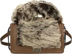 Damen-Umhängetasche aus echtem Ruga- und Ponyfell. Handwerkliches Produkt. Hergestellt in Italien GLX22659923FBG Taupe 24x14x9 cm