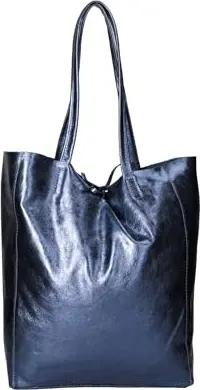 Damen-Shoppertasche aus Rindsleder, Handgefertigt in Italien, mit Magnetverschluss, Dunkelblau, 32x37x18 cm