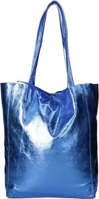 Shopper-Tasche für Damen aus laminiertem Echtleder. Handwerkliches Produkt. Hergestellt in Italien GLX220756523FBG Blau 40x36x11 cm