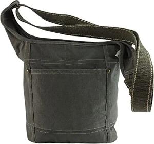 Damen Umhängetasche. Die nachhaltige Vegane Crossbody Hobo Tasche ist aus 100% Baumwolle/Canvas. Große Stofftasche als Geschenkidee für Frauen (Khaki grün)
