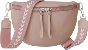 Made in Italy Damen Leder Gürteltasche Crossbody Hüfttasche Bauchtasche Umhängetasche Brusttasche Crossover Bodybag Schultertasche Handytasche Geldtasche OBC Tasche Schminktasche Kosmetiktasche Rosa