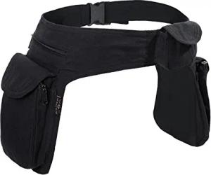 Doppel Bauchtasche Sidebag Gürteltasche Festivaltasche Hippie Goa, Farbe:Black/Schwarz