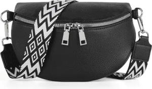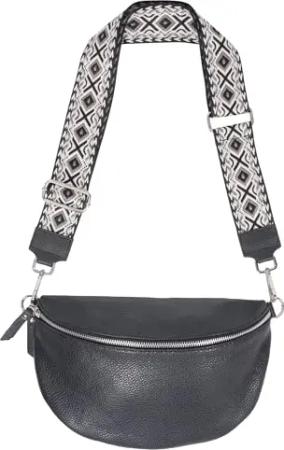 Große Crossbody Gürteltasche aus 100% Leder Umhängetasche Schultertasche mit breitem Gurt - Jaime (schwarz 2)