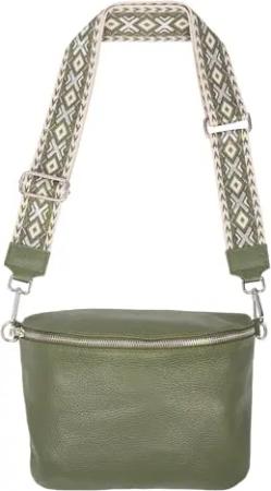 Große Umhängetasche Rona Crossbody Bag Gürteltasche Schultertasche in Gr. L aus 100% Leder mit breitem Gurt (olivgrün)