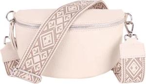 Bauchtasche Damen, Echtleder, Made in Italy, Umhängetasche, Brusttasche, Crossbody Bag (1 Tasche & 2 Gurte) (Beige (Bohe Beige Taupe), Mittelgroße Tasche (25x16x7cm))