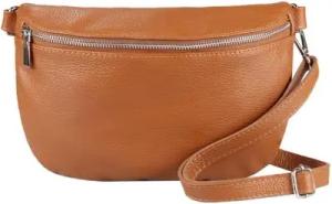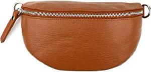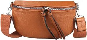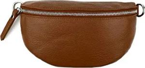 Made in Italy Damen Leder Tasche Handytasche Gürteltasche Crossbody Hüfttasche Bauchtasche Umhängetasche Cross-Over Bodybag Schultertasche Kosmetiktasche Cognac