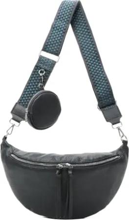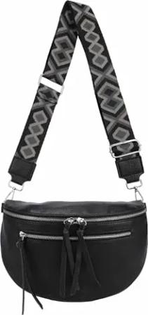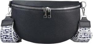 Damen Tasche Umhängetasche Brusttasche Muster Gürtel Bauchtasche Crossbody Gürteltasche Hüfttasche Crossover Bodybag Schultertasche Handytasche Leder Optik Schwarz.M