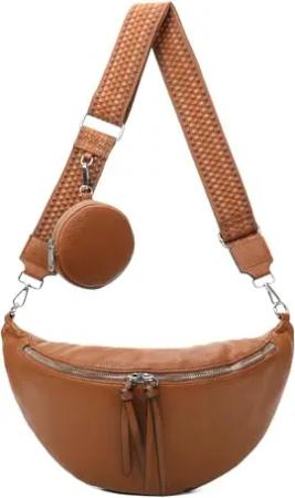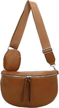 OBC Damen Tasche Crossbody Gürteltasche Brusttasche Umhängetasche Hüfttasche Crossover Bauchtasche Bodybag Schultertasche Handytasche Kunstleder Cognac