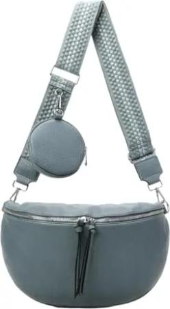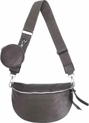 COM OBC Made in Italy Damen Leder Tasche Gürteltasche Crossbody Hüfttasche Bauchtasche Umhängetasche Cross-Over Bodybag Schultertasche Handytasche Grau