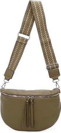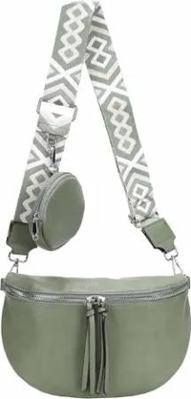 COM OBC Made in Italy Damen Leder Tasche Gürteltasche Crossbody Hüfttasche Bauchtasche Umhängetasche Cross-Over Bodybag Schultertasche Handytasche Olivgrün