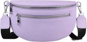 Made in Italy Damen Leder Tasche Handytasche Gürteltasche Crossbody Hüfttasche Bauchtasche Umhängetasche Cross-Over Bodybag Schultertasche Kosmetiktasche Flieder