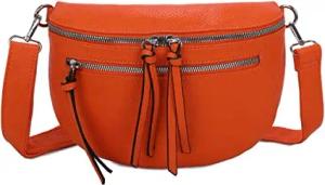 Damen Tasche Gürteltasche Crossbody Leder Optik Hüfttasche Bauchtasche Umhängetasche Cross-Over Bodybag Schultertasche Handytasche Leder Optik Orange XL
