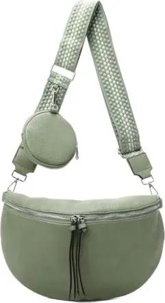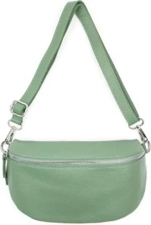 Made in Italy Damen Leder Tasche Handytasche Gürteltasche Crossbody Hüfttasche Bauchtasche Umhängetasche Cross-Over Bodybag Schultertasche Kosmetiktasche Aloe (Grün)
