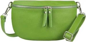 Made in Italy Damen Leder Tasche Gürteltasche Crossbody Hüfttasche Bauchtasche Umhängetasche Wildleder Brusttasche Crossover Bodybag Schultertasche Handytasche Geldtasche Grün (Wildleder)