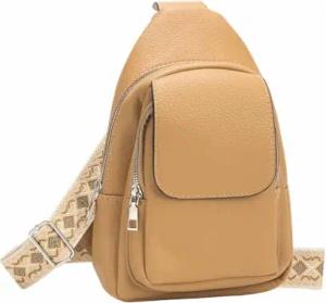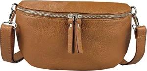 Made in Italy Damen Leder Tasche Handytasche Gürteltasche Crossbody Hüfttasche Bauchtasche Umhängetasche Cross-Over Bodybag Schultertasche Kosmetiktasche Camel