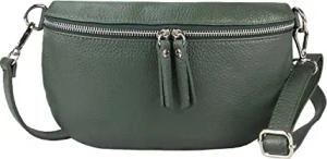 Made in Italy Damen Leder Tasche Handytasche Gürteltasche Crossbody Hüfttasche Bauchtasche Umhängetasche Cross-Over Bodybag Schultertasche Kosmetiktasche Dunkelgrün