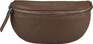 Made in Italy OBC Damen Leder Tasche Gürteltasche Crossbody Hüfttasche Bauchtasche Hüfttasche Umhängetasche Cross-Over Bodybag Schultertasche Handytasche Geldtasche V2 Taupe