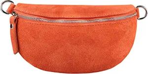 Made in Italy OBC Damen Leder Tasche Gürteltasche Crossbody Hüfttasche Bauchtasche Hüfttasche Umhängetasche Cross-Over Bodybag Schultertasche Handytasche Geldtasche (Orange (Wildleder))