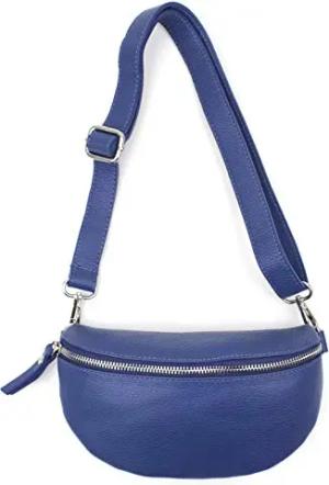 Made in Italy Damen Leder Tasche Gürteltasche Crossbody Hüfttasche Bauchtasche Umhängetasche Wildleder Brusttasche Crossover Bodybag Schultertasche Handytasche Geldtasche Dunkelblau (Leder)