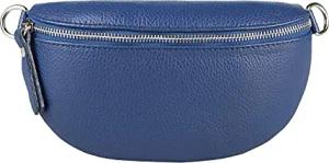 Made in Italy Damen Leder Tasche Handytasche Gürteltasche Crossbody Hüfttasche Bauchtasche Umhängetasche Cross-Over Bodybag Schultertasche Kosmetiktasche Dunkelblau