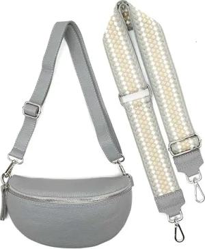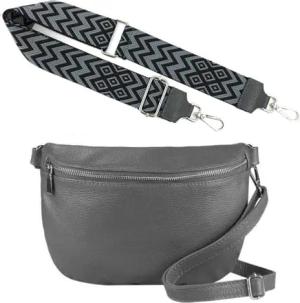 Made in Italy OBC Damen Set Gürteltasche + Schultergurt Leder Crossbody Hüfttasche Bauchtasche Umhängetasche Brusttasche Crossover Bag Schultertasche Handytasche Geldtasche Grau M (27cm)