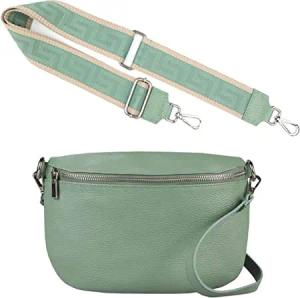 Made in Italy Damen Leder Tasche Gürteltasche Crossbody Hüfttasche Bauchtasche Umhängetasche Wildleder Brusttasche Crossover Bodybag Schultertasche Handytasche Geldtasche Mint (Leder)