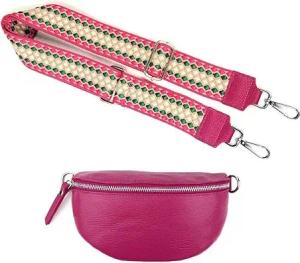 Made in Italy OBC Damen Set Gürteltasche + Schultergurt Leder Crossbody Hüfttasche Bauchtasche Umhängetasche Brusttasche Crossover Bag Schultertasche Handytasche Geldtasche Pink M (27cm) + Gürtel