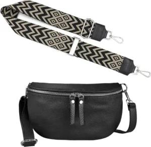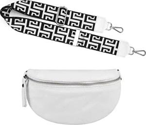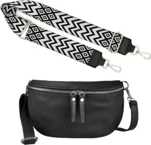 Made in Italy OBC Damen Set Gürteltasche + Schultergurt Leder Crossbody Hüfttasche Bauchtasche Umhängetasche Brusttasche Crossover Bag Schultertasche Handytasche Geldtasche Schwarz-Weis S (25cm)